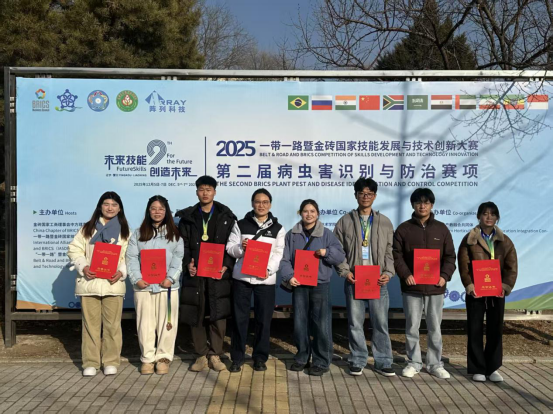 2025年12月6日,辽宁营口鲅鱼圈区迎来一场高规格技能盛宴——2025一带一路暨金砖国家技能发展与技术创新大赛第二届病虫害识别与防治赛项在此开赛!由韩伟、樊思敏两位老师带队的我校代表队,与全国28个省(自治区、直辖市)106所院校的248支队伍、496名选手同台竞技,最终强势斩获一等奖1名、三等奖1名、优秀奖1名,用实力展现我校学子的专业硬功与青春风采!